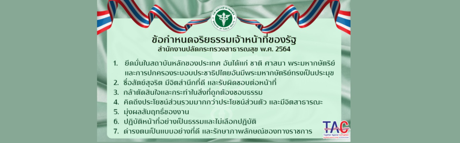 และการส่งเสริมคุณธรรม จริยธรรม ของกระทรวงสาธารณสุข ประกอบด้วย